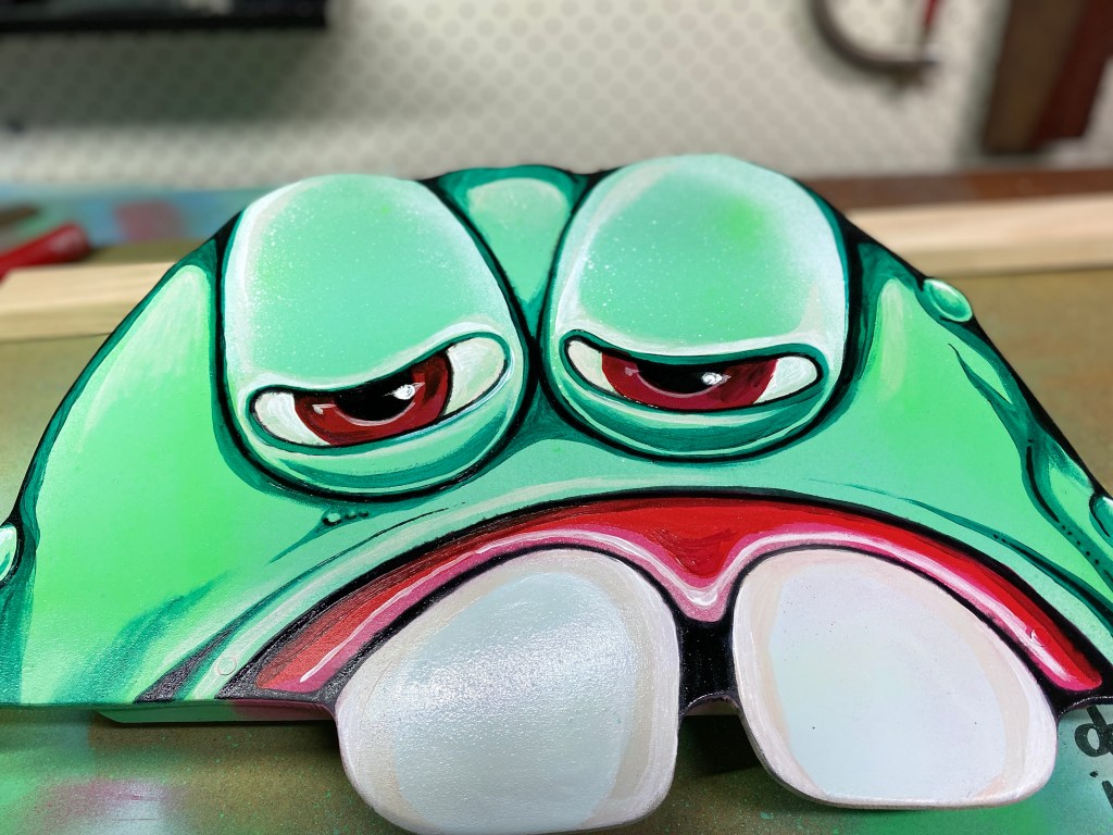 Say hello to Frank, I wanted Frank to be chomping down on that busted metal frame like he was standing in the basement holding onto the frame and watching the cars zipping past. I’m pretty satisfied by the result.