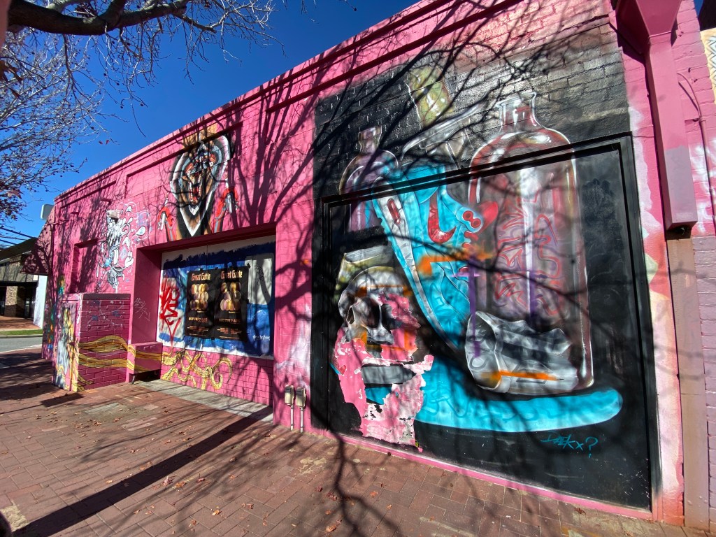 I’m an absolute beginner when it comes to large scale artwork, but for a while now I’ve been wanting to take my work to a wall somewhere. Taking an idea that started in your head, sketching it then scaling it up to a large wall mural is a real test of an artists abilities and a great way to push yourself out of your comfort zone. Luckily for me the good people at The Corner Gallery had just the right wall for me facing busy Hay street in Subiaco.