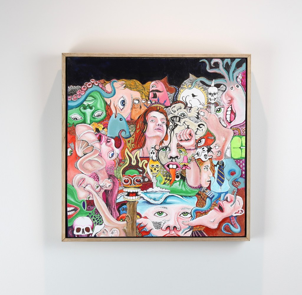 Aerosol, Acrylic and Ink on canvas. Box Framed.