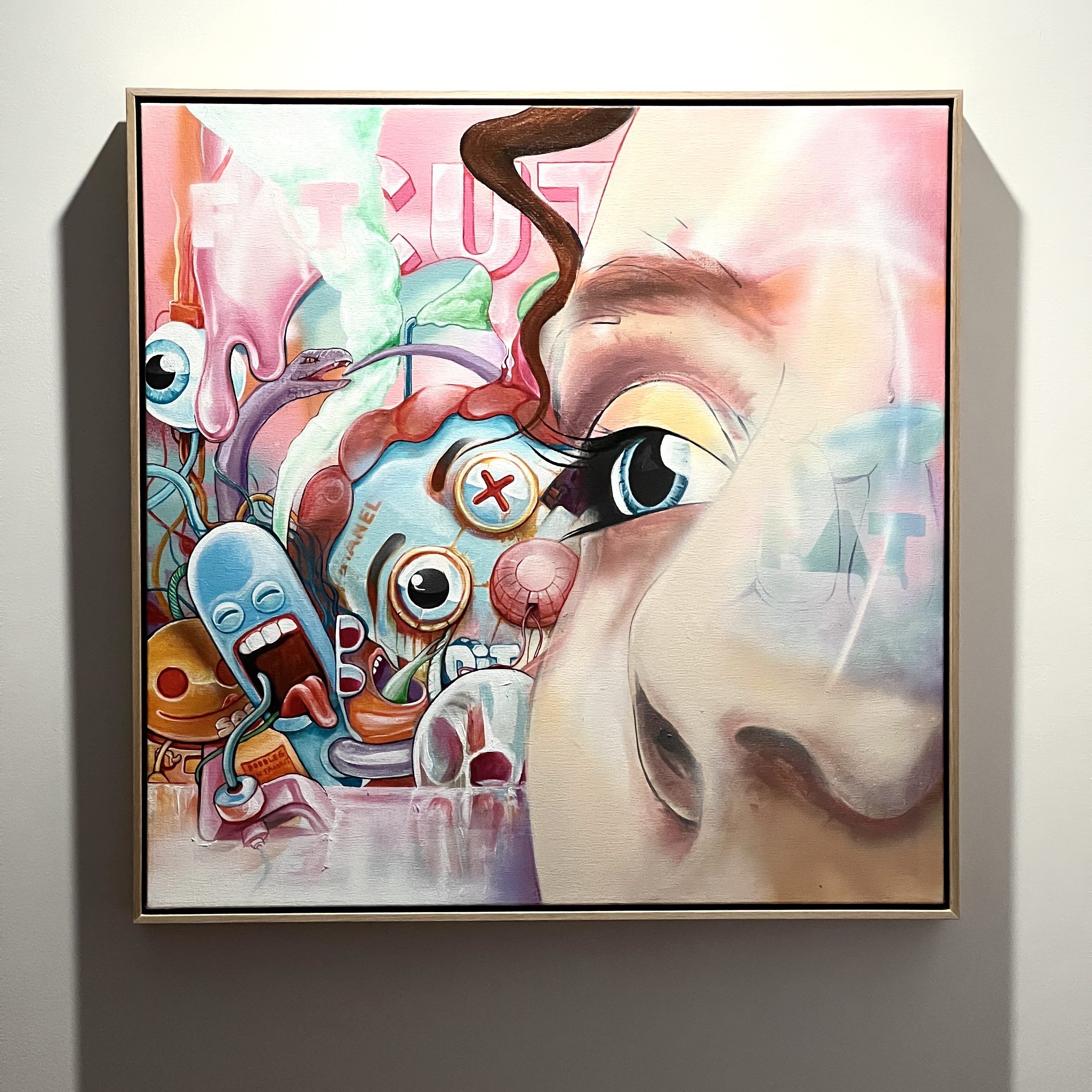 Aerosol, Acrylic and Ink on canvas. Box Framed.