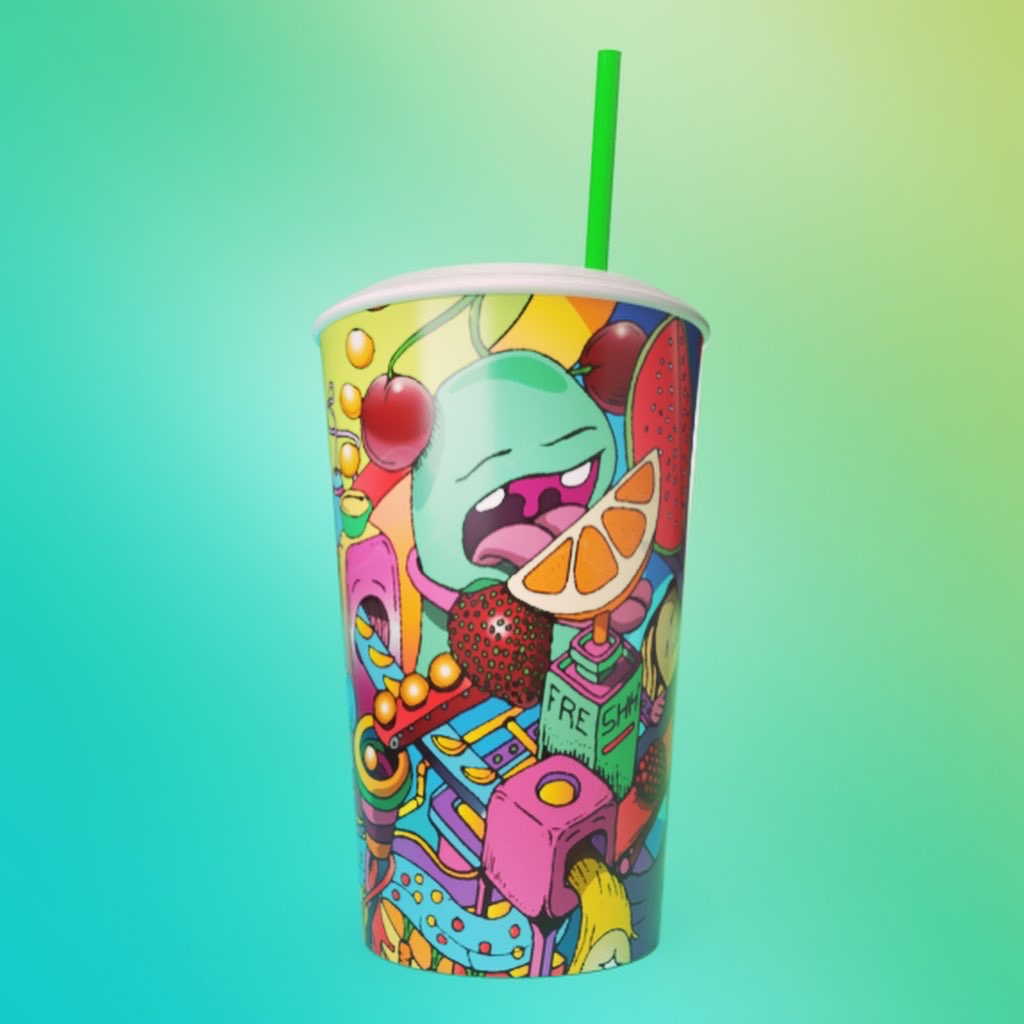 After getting all the artwork files together I thought it would be nice to get a visualization of what the final cup might look like so I used Adobe Dimension to quickly create a cup and map the artwork onto its surface. 3D is not my forte but this app keeps it very simple.